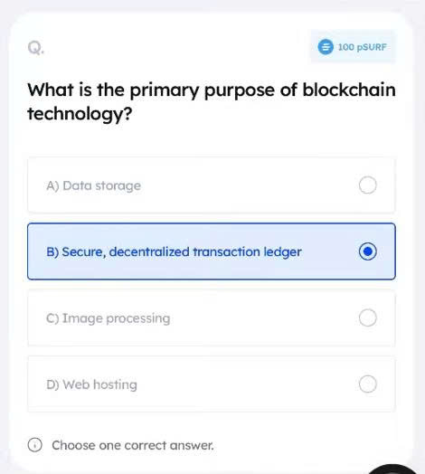- Submit before the daily reset. The correct answer gives you SURF points.