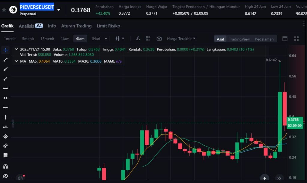 Pieverse (PIEVERSE) mencatat lonjakan 43.5%, mencapai $0.39 dengan volume $102 juta. Sebagai proyek metaverse berbasis BNB Chain, Pieverse berfokus membangun dunia virtual yang memadukan AI, gaming, dan sosial ekonomi digital.