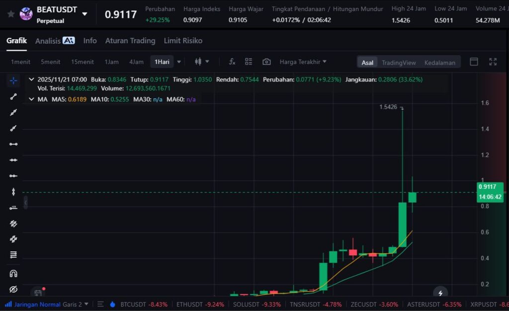 Audiera (BEAT) naik 85% dalam sehari, mencapai $0.95 dengan volume $94 juta. Sebagai transformasi Web3 dari game “Audition,” BEAT menggabungkan ritme musik, interaksi AI, dan ekonomi blockchain menjadi pengalaman sosial berbasis hiburan.