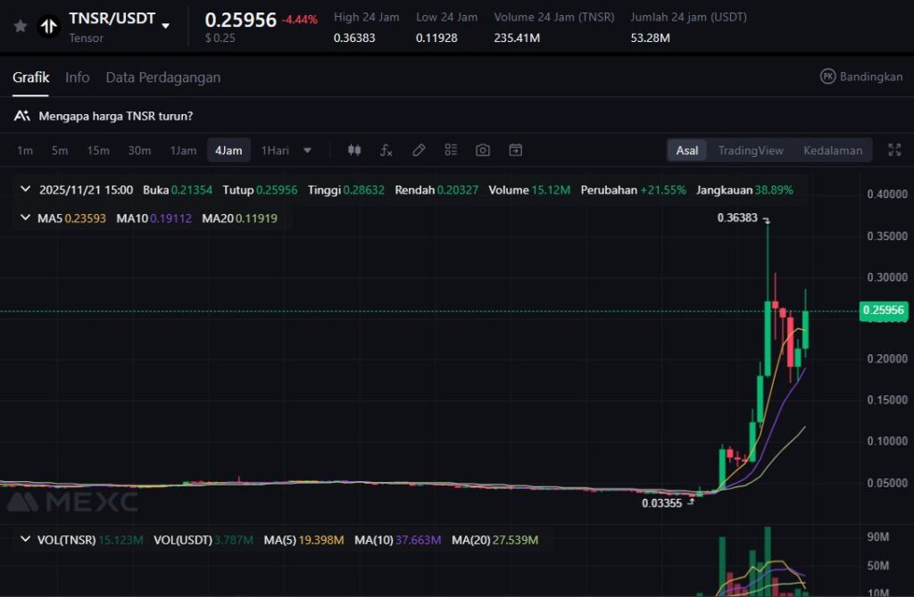 Tensor (TNSR) memimpin daftar gainers dengan lonjakan 136.9% dalam 24 jam, diperdagangkan di sekitar $0.19 dengan volume harian mencapai $1.6 miliar. Proyek ini dikenal sebagai NFT marketplace terbesar di ekosistem Solana, menangani 60–70% dari total volume NFT harian jaringan tersebut.