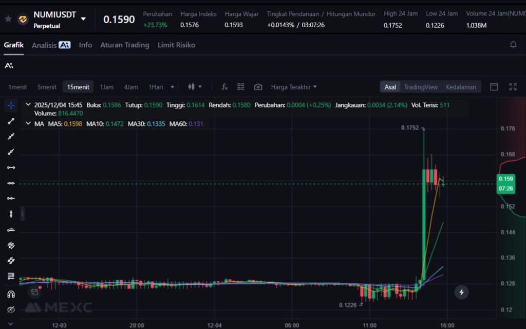 NUMI naik lebih dari 27% setelah peluncuran kampanye staking baru di platform DeFi miliknya. Program ini memberikan imbal hasil tinggi bagi pengguna awal dan meningkatkan permintaan token secara signifikan.