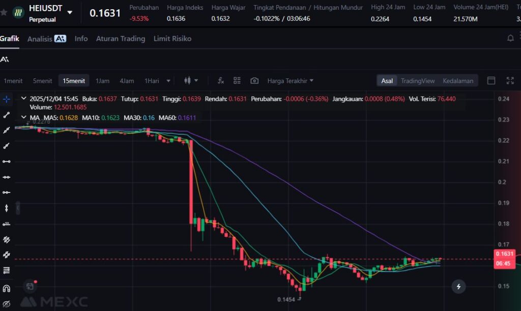 HEI menjadi top loser hari ini dengan koreksi lebih dari 27%. Tekanan jual muncul setelah periode kenaikan tajam sebelumnya, di mana banyak trader memilih merealisasikan keuntungan.