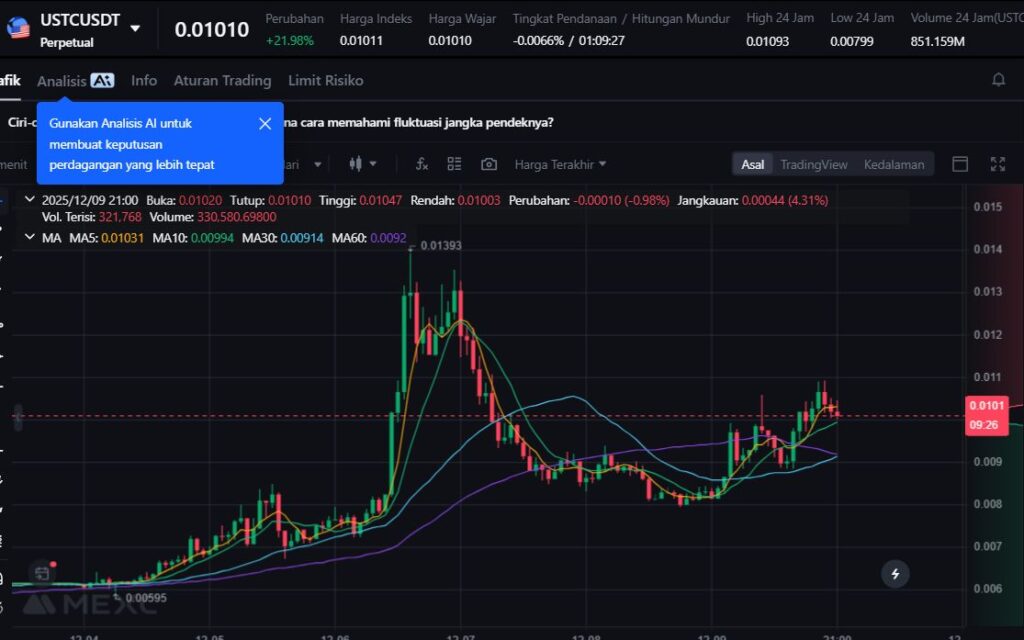 Stablecoin lama TerraClassicUSD (USTC) mengalami lonjakan +22,56% dalam 24 jam terakhir. Lonjakan ini lebih bersifat spekulatif, mengingat USTC sudah lama tidak lagi mempertahankan nilai 1:1 terhadap dolar AS.
