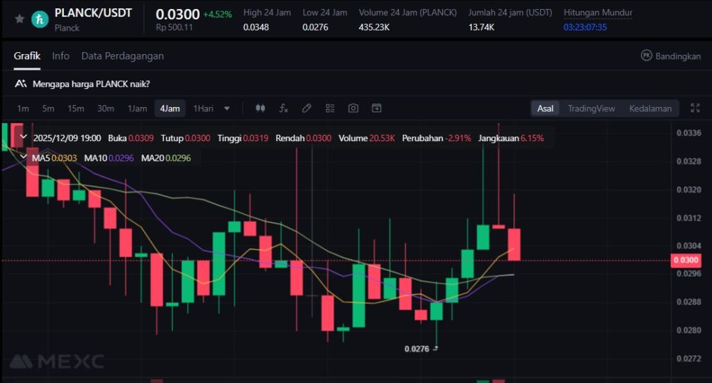 PLANCK mencatat kenaikan +19,31%, menutup daftar aset dengan performa terbaik di MEXC hari ini. Lonjakan harga PLANCK menegaskan tren naik pada proyek-proyek berbasis data dan analitik di tengah rotasi market ke aset menengah.