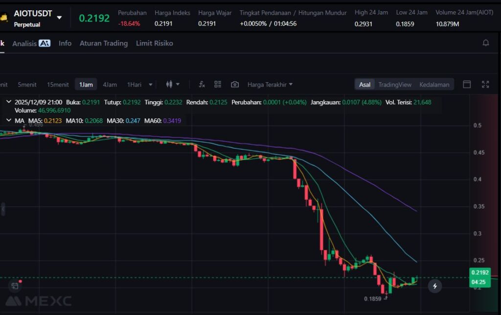 AIOT masih menjadi salah satu token dengan potensi jangka panjang di sektor integrasi AI dan IoT, namun volatilitas ekstrem menunjukkan trader lebih memilih wait-and-see di tengah ketidakpastian arah market global.