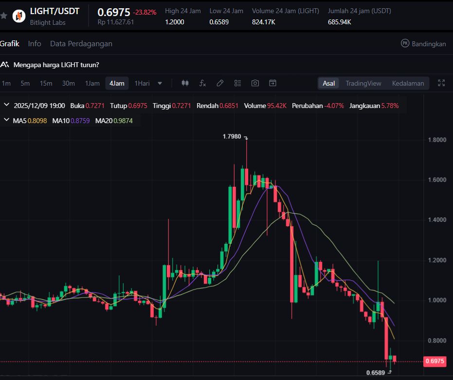 Proyek ini bergerak di sektor energi digital dan solusi berbasis blockchain untuk efisiensi data. Meski fundamentalnya masih dikembangkan, volatilitas LIGHT tetap tinggi karena pergerakannya banyak dipengaruhi sentimen market.