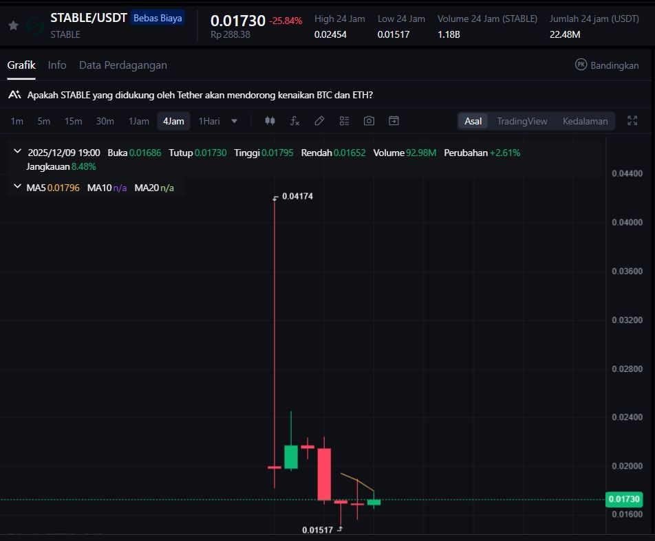 Meskipun mengusung ide kestabilan harga dan pengendalian volatilitas, STABLE masih menghadapi kesulitan menarik volume perdagangan tinggi. Tekanan jual hari ini memperlihatkan bahwa market sedang dalam fase rotasi ke aset berisiko.