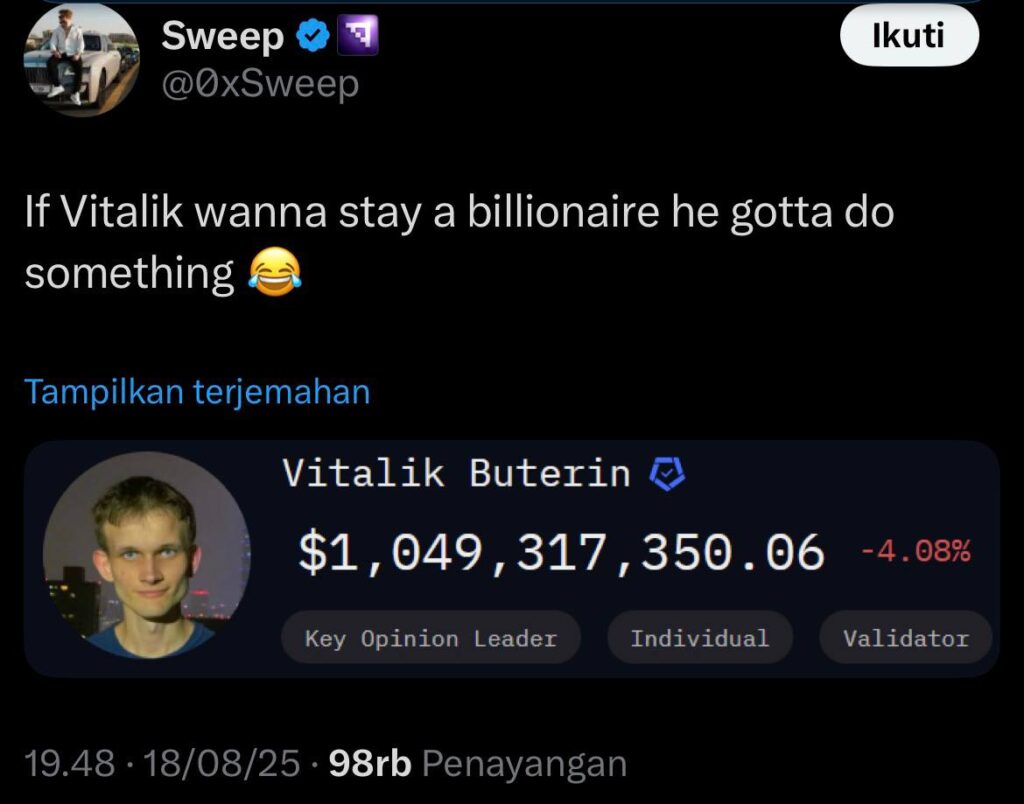 Kejatuhan harga Ethereum kali ini menjadi pengingat keras betapa cepatnya nilai aset kripto bisa berubah bahkan bagi sosok sekelas Vitalik Buterin. Dalam hitungan jam, status miliarder bisa lenyap seiring pergerakan market yang sangat fluktuatif.
