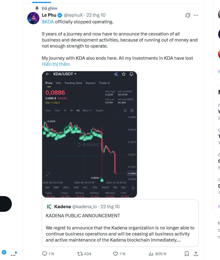 Many projects are created with a single purpose: distributing tokens to the team and early investors by pumping the price and then selling. Tokenomics often have monthly unlock schedules. When the market falls, selling pressure spikes, while buy demand drops, causing token losses of 90 to 99 percent. Most retail investors do not understand this. They only see price increases and buy blindly, while a large number of locked tokens far exceeds circulating supply.