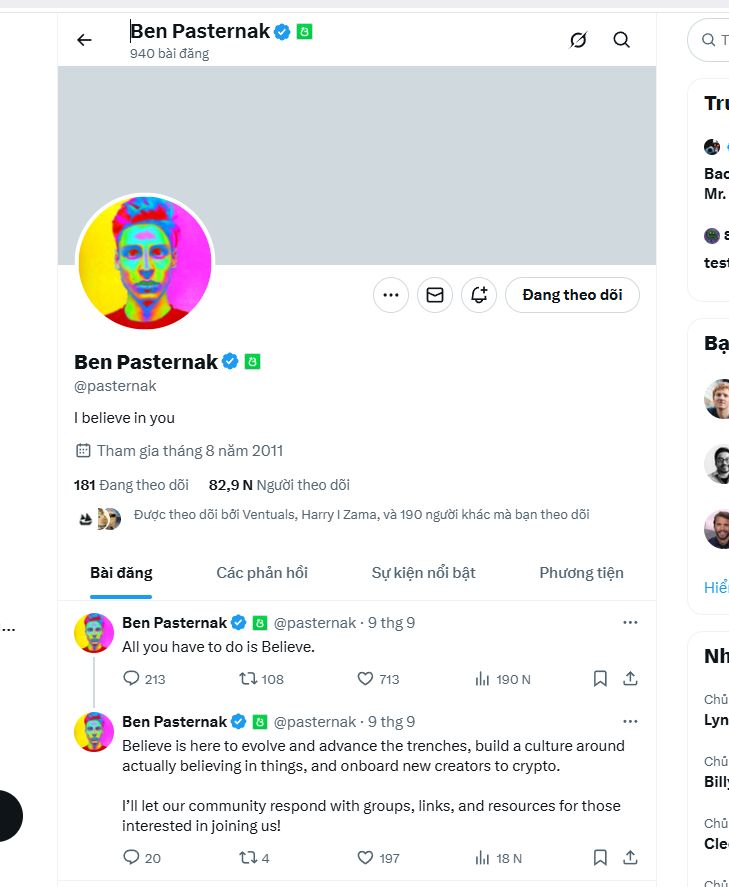BelieveApp was founded by Ben Pasternak, a young entrepreneur also known for creating Clout. Ben is the visionary behind the product, token design, and overall strategy. While the broader team remains under the radar, Ben is the public face of Believe and its key decision-maker.