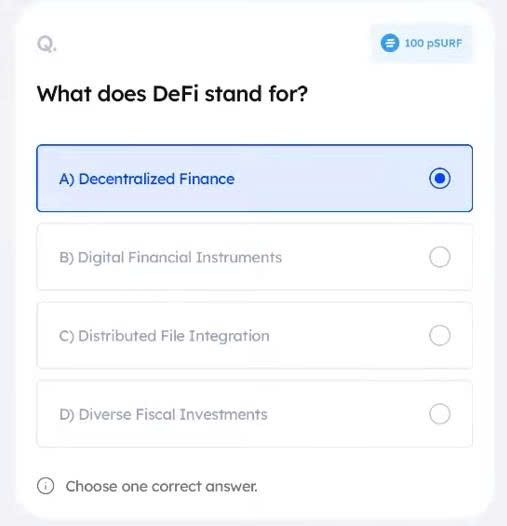 - Answer daily quizzes → earn SURF points.
