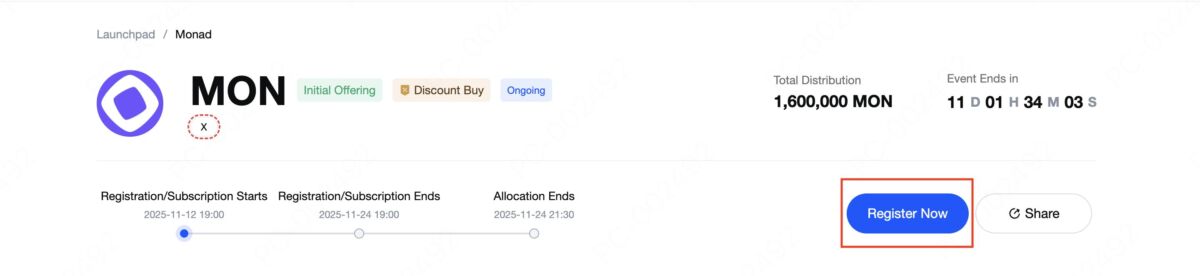 Step 2: Navigate to the Monad Launchpad and click the Register button. Ensure you’ve completed advanced KYC verification beforehand.